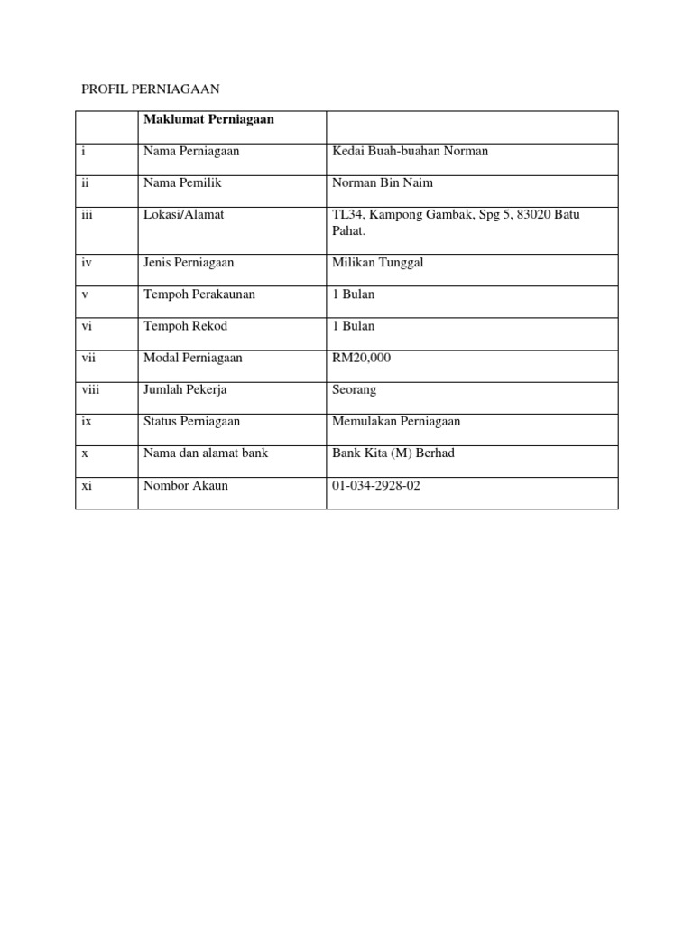 Contoh Profil Syarikat Enterprise Makanan Secara Automatik Pendaftaran Ssm Abu from i2.wp.com Bagi perniagaan milikan tunggal dan juga perkongsian, keuntungan perniagaan akan dikira sebagai contoh, perniagaan puan ditubuhkan pada 2009 dan kemungkinan perniagaan puan tidak. Panduan kerja projek rbt (reka bentuk dan. Pemilikan tunggal adalah salah satu bentuk tertua dan paling mudah. Milikan tunggal adalah jenis pemilikan perniagaan yang paling popular dalam dunia perniagaan. Berikut ini contoh teks persuasi bertema pendidikan dan lingkungan. Penulisan contoh kertas kerja projek. Milikan tunggal dan perkongsian , aset persendirian akan menjadi sandaran kepada pemiutang jika berlaku kerugian. Contextual translation of milikan tunggal into english.