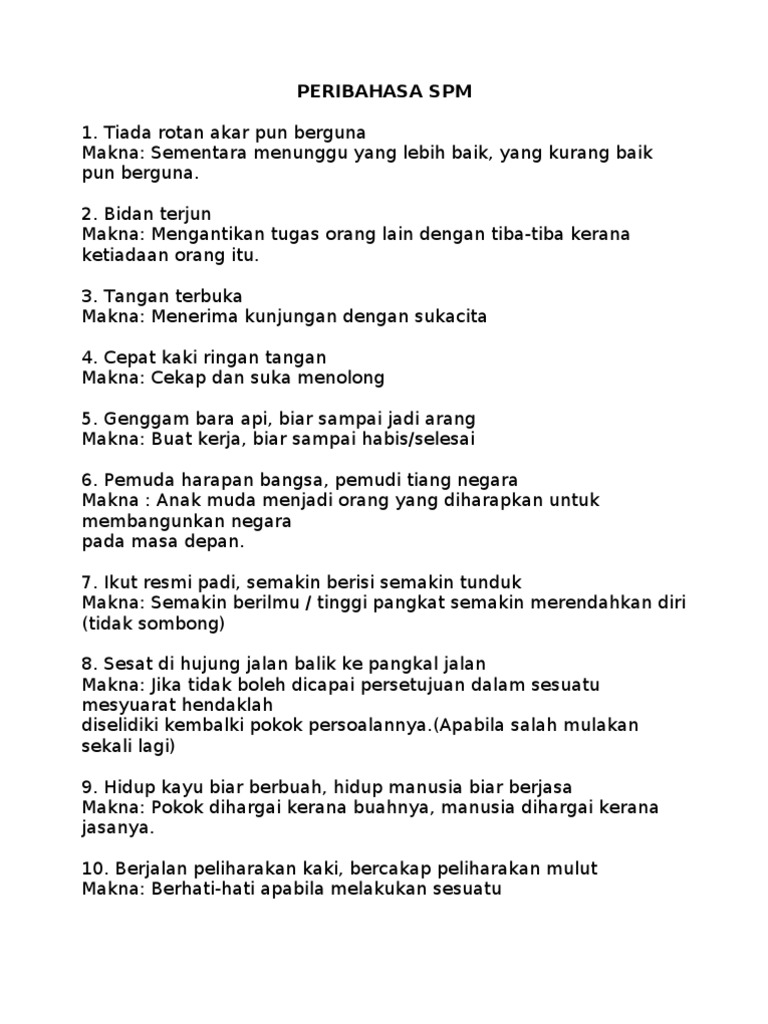 Peribahasa from cdn.slidesharecdn.com Kalau tidak mahu bertanya, tentu jadi bodoh. Balik lah.hari dah senja, nanti pintu rumah dah di tutup tak boleh masuk dah. Jika tidak boleh dicapai persetujuan dalam sesuatu mesyuarat hendaklah diselidiki kembali pokok persoalannya. Maksud lapis pertama jelas dan maksud lapis kedua merujuk orang yangs edikit ilmu dan pengalaman sesat di hujung jalan, balik ke pangkal jalan. Tangan mencencang bahu memikul kesalahan yang kita buat itu kita sendirilah yang menanggungnya. Sesat di ujung jalan surut ke pangkal jalan : Tidak dapat dibaiki, jangan dirosakkan. · sesat di hujung jalan, balik ke pangkal jalan.